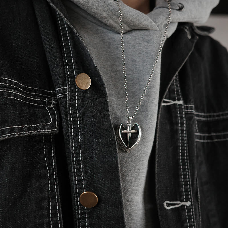 The entire pendant is made of exquisite craftsmanship, the silver is warm and shiny, and every detail shows ingenuity. The wings surround the cross, implying sacred protection and blessing, as if conveying a kind of power: under the protection of faith, the wearer can move forward without fear of wind and rain. This is not only an ornament, but also a comfort and sustenance of the soul. -