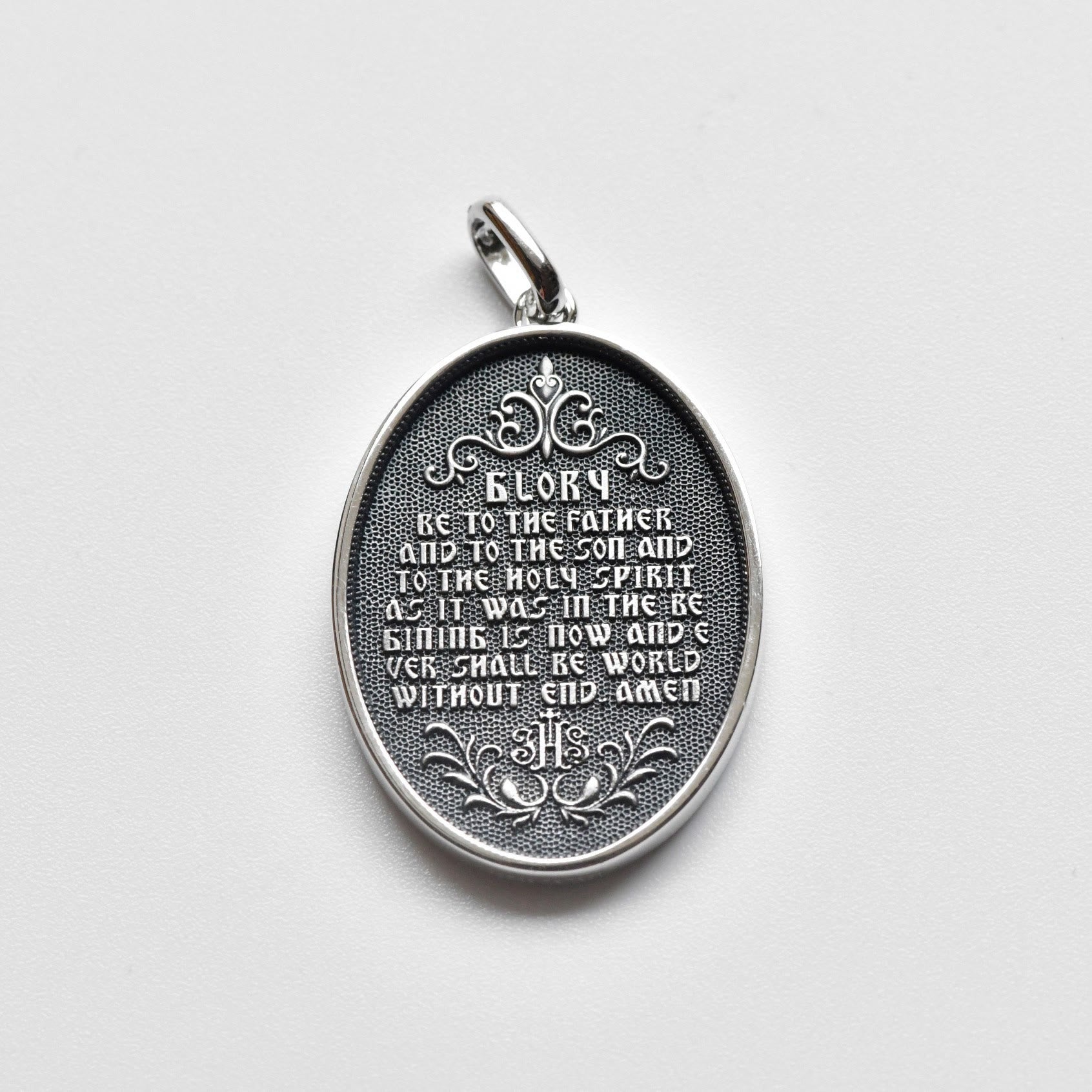 Antique Style Sterling Silver Antique Divine Mercy Jesus Oval Medal Necklace