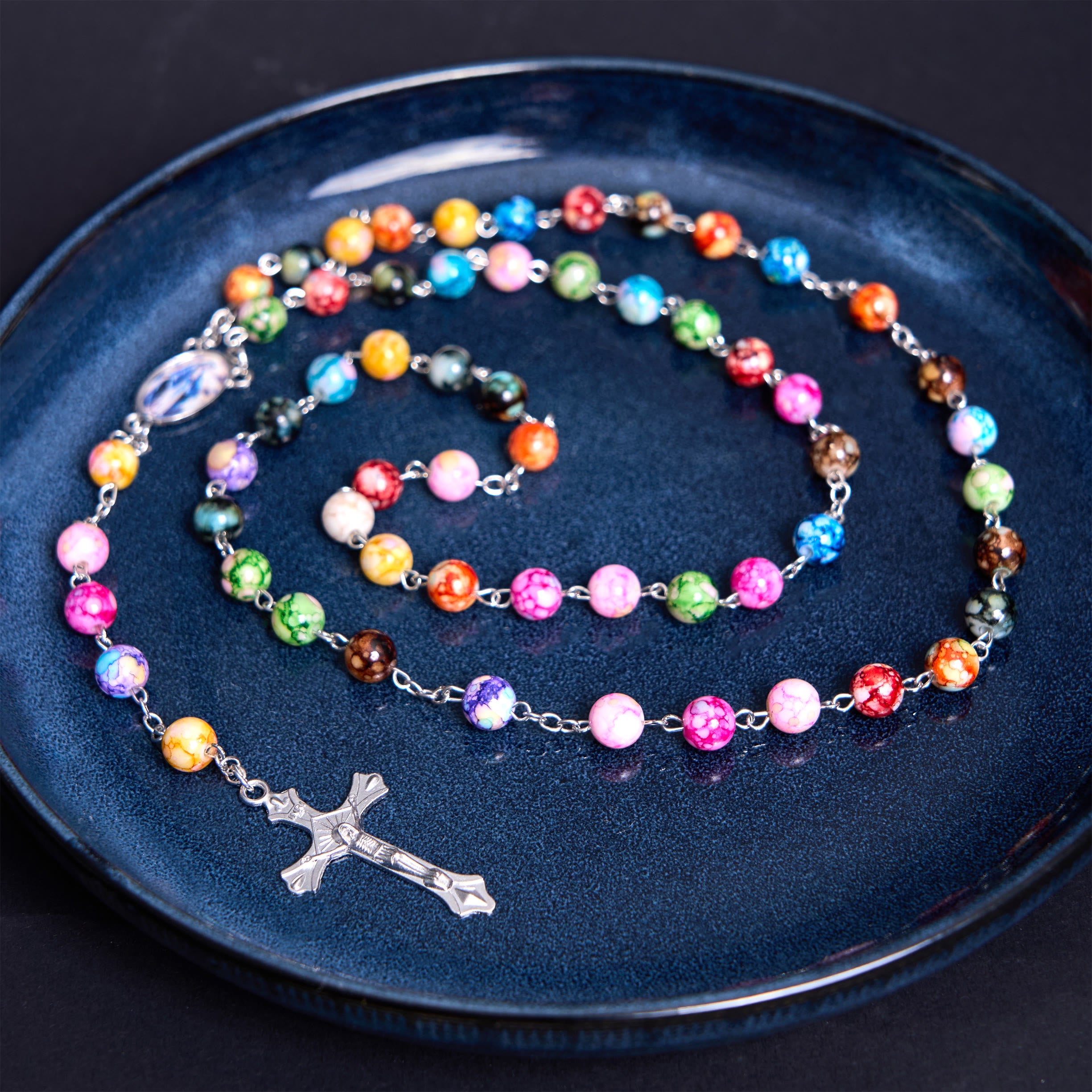 Brighten your prayers with this vibrant 8mm multicolor acrylic rosary featuring an Assumption of Our Lady & Crucifix medallion. Perfect for daily devotion and meaningful gifting.