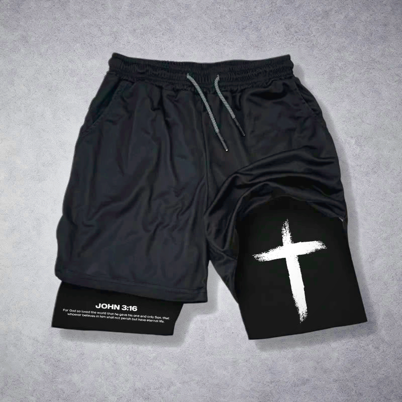 Look good and stay motivated in these limited-edition Christian performance shorts. Designed with premium breathable materials and a super stretchy muscle fit, they’re perfect for active lifestyles. Features include external pockets, an inner lining pocket for your phone, and sublimation printing for long-lasting vibrant designs. Available in sizes XS to 3XL with a regular fit. Material: 150g mesh + 16D milk silk – soft, skin-friendly, and breathable. Model is 5’11” (181cm), 202lbs (92kg) wearing size L.
