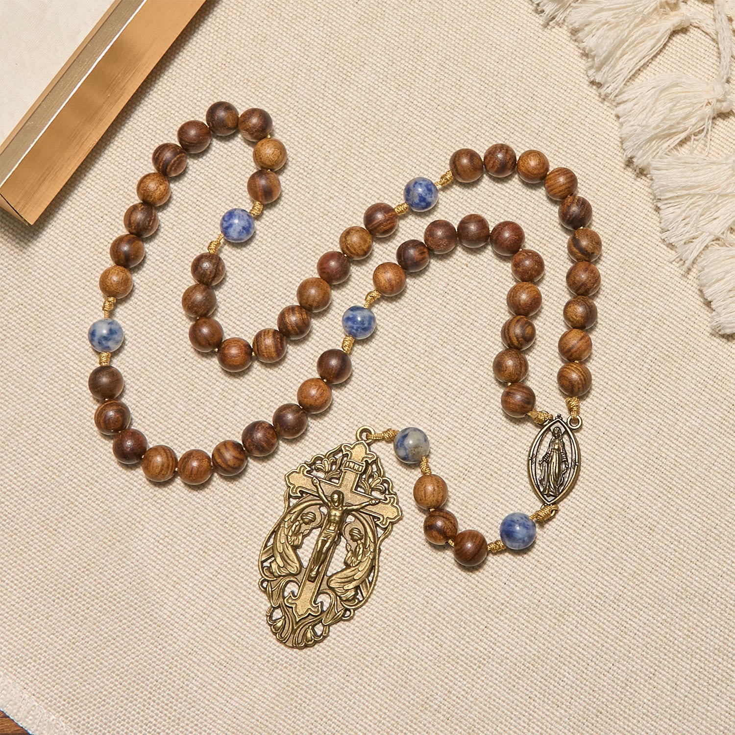 Experience spiritual devotion with this handcrafted rosary featuring olive wood beads and ceramic accents. The Virgin Mary and detailed crucifix centerpiece symbolize faith and divine love. Perfect for prayer, meditation, or as a meaningful gift. Specifications: 8mm brown wooden beads, hemp cord, five-decade design, 19.68”+5.9” length, and 3.53oz weight. Handmade with care and high-quality materials for lasting reverence.
