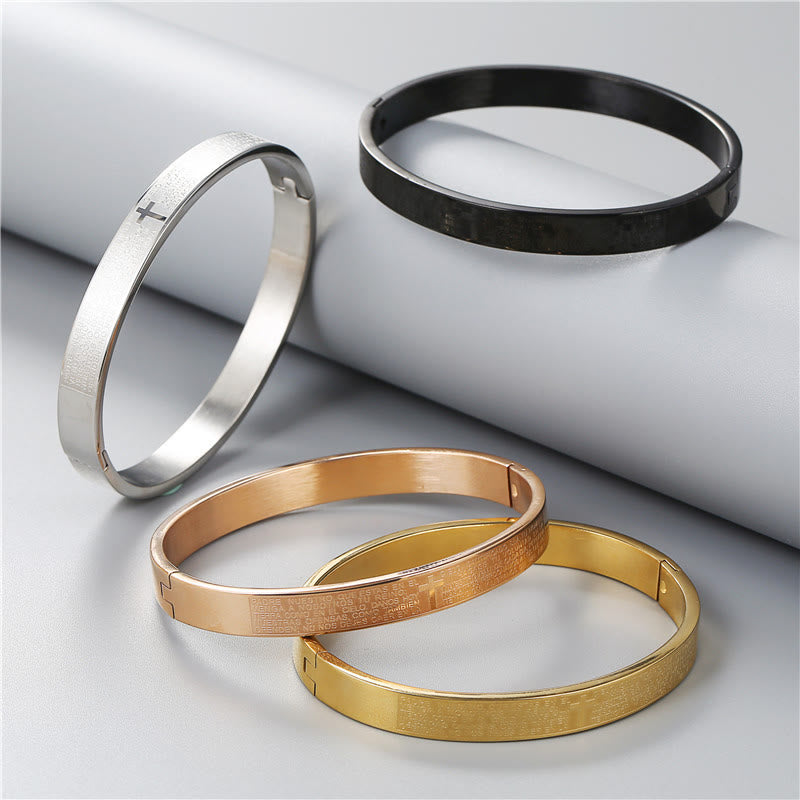 Embrace your faith with this elegant Lord’s Prayer bracelet featuring a cross centerpiece. Crafted from high-quality stainless steel, it serves as a daily reminder of divine strength and spiritual resilience. Perfect for devotion and everyday wear, this bracelet is ideal for gifting on special occasions like baptisms or confirmations.
