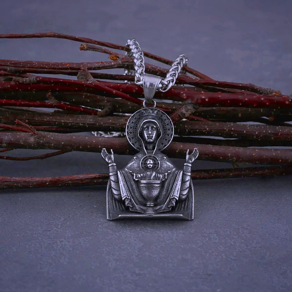 This Virgin Mary pendant necklace is crafted from high-quality stainless steel, featuring a detailed Catholic medallion design. Handmade with care, it weighs approximately 30g and comes with a protective chain. Perfect for religious devotion and daily wear. Our commitment includes safe payments, fast processing within one business day, and responsible shipping.