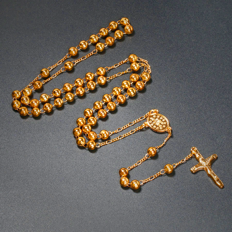 Premium handmade Christian rosary featuring a long chain, Virgin Mary pendant, and Jesus cross. Available in golden, silver, and multicolor styles. Made from high-quality metal beads, 6mm in size, weighing approximately 50g. Perfect for prayer and religious devotion. Orders processed within one business day with safe payment options and reliable shipping.
