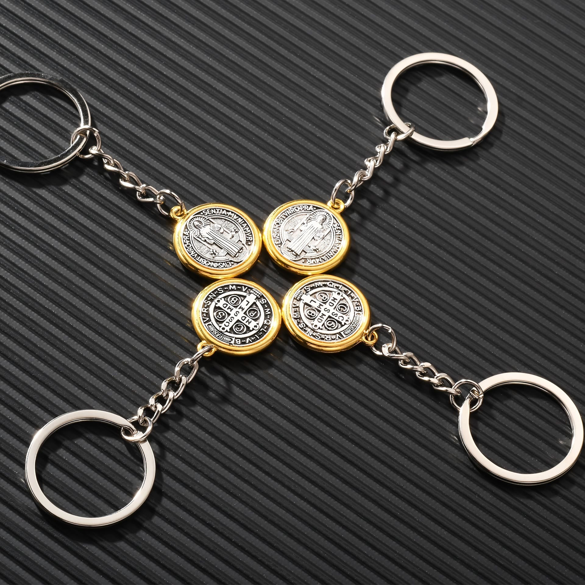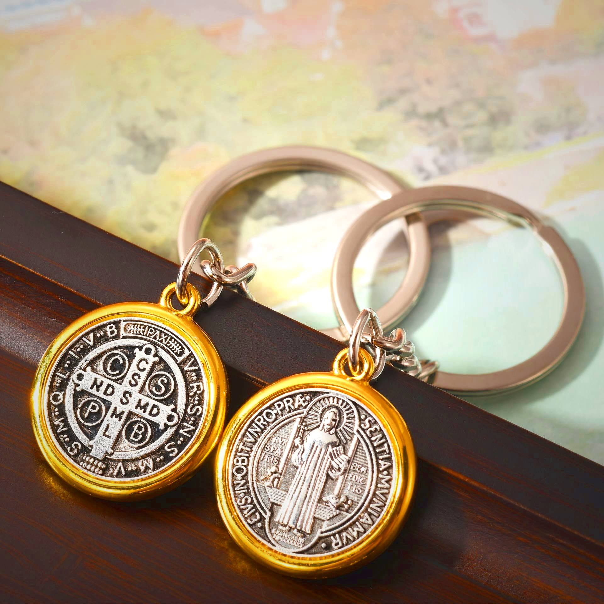 Classic Golden Edged St. Benedict Keychain with Intricate Patterns: Timeless Symbol of Spiritual Devotion