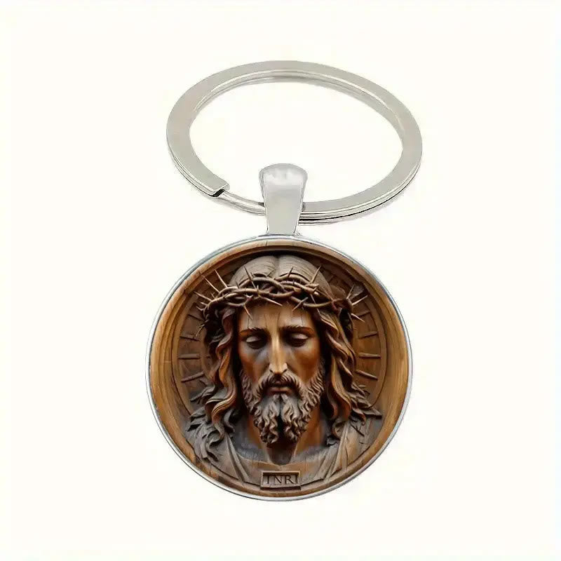 Classic Style Divine Jesus with Crown of Thorns Keychain : Timeless Symbol of Spiritual Redemption