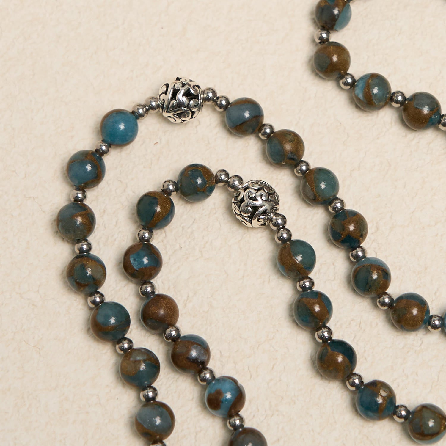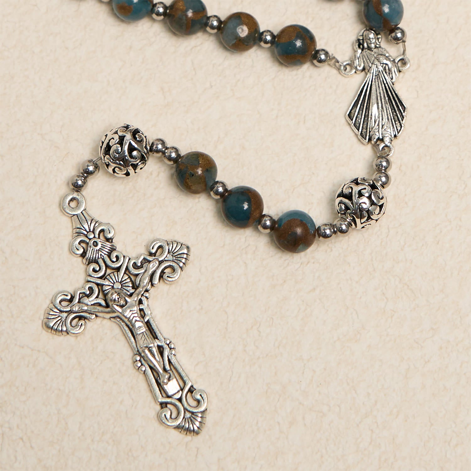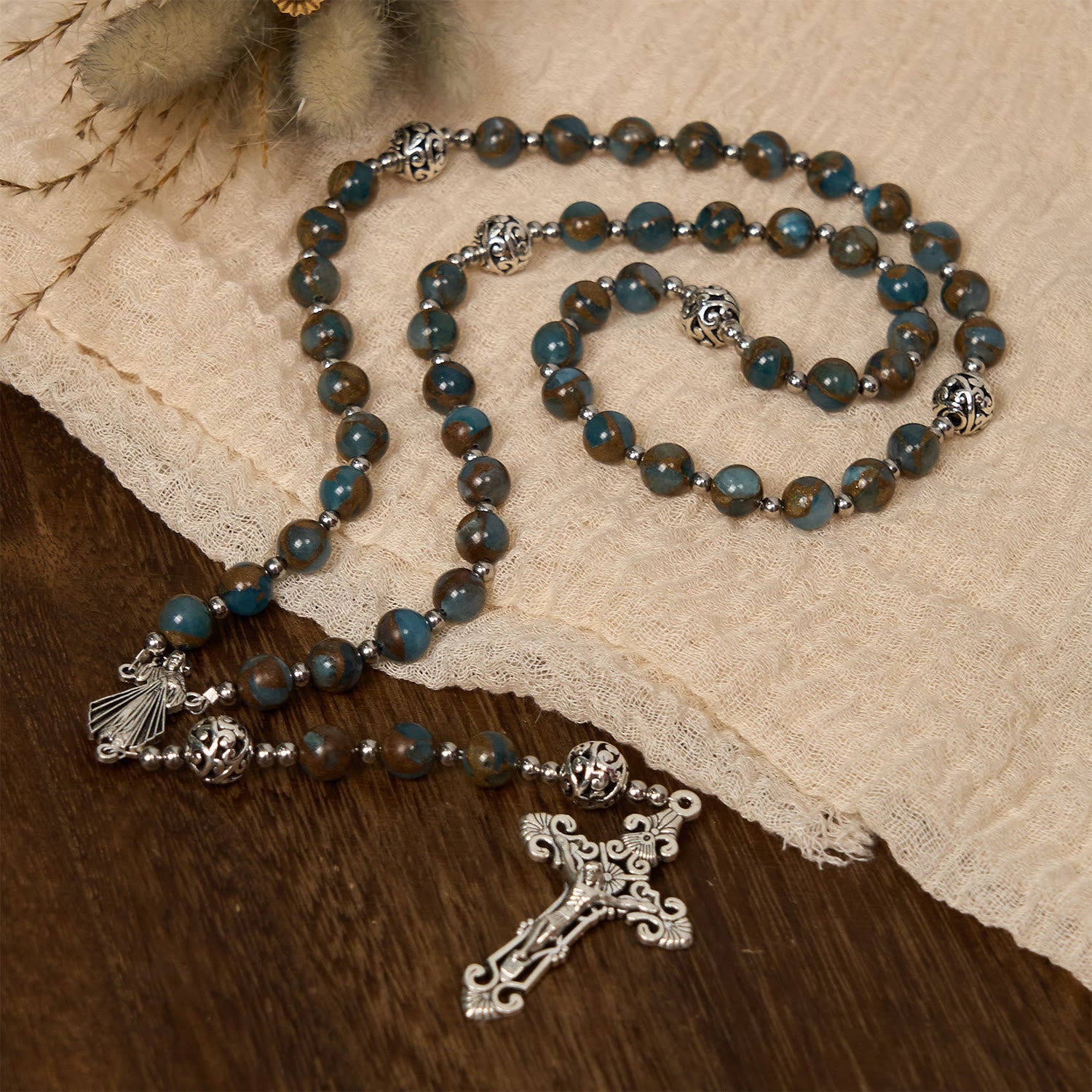 Embrace your faith with this exquisite Divine-Inspired Lake Blue Cloisonné Rosary. Meticulously handcrafted with 8mm lake blue cloisonné beads and detailed silver accents including a Virgin Mary pendant and crucifix, this five-decade rosary serves as a beautiful tool for prayer and meditation. The harmonious blend of deep blue and earth-toned hues symbolizes divine connection and spiritual grounding. Made with high-quality alloy chain and gold-tone stone beads, it’s both durable and elegant. Perfect for personal use or as a meaningful gift for any Christian seeking a deeper spiritual connection.