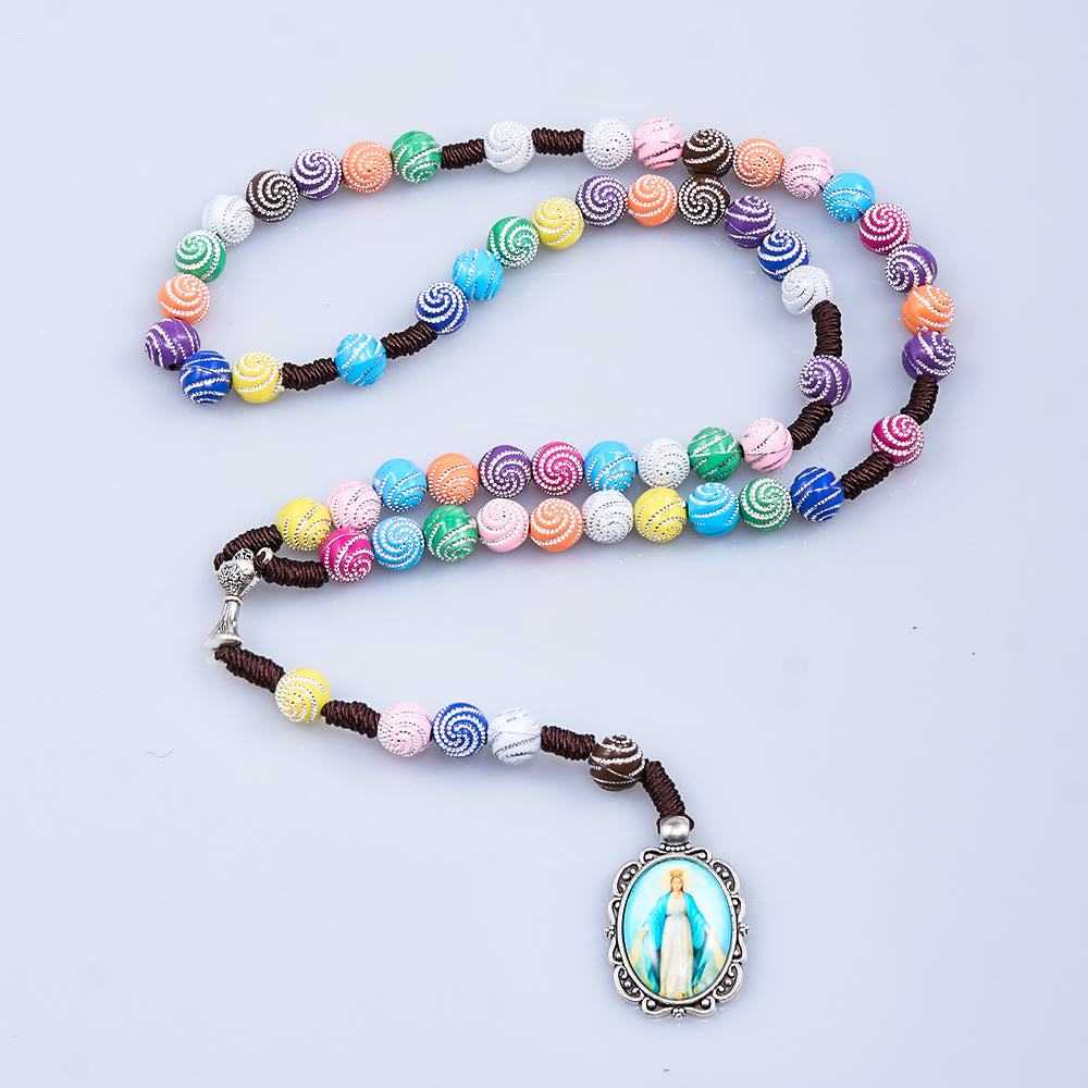 Holy Grail & Miraculous Medal of 8 mm Round Multicolor Acrylic Nylon Cord Rosary