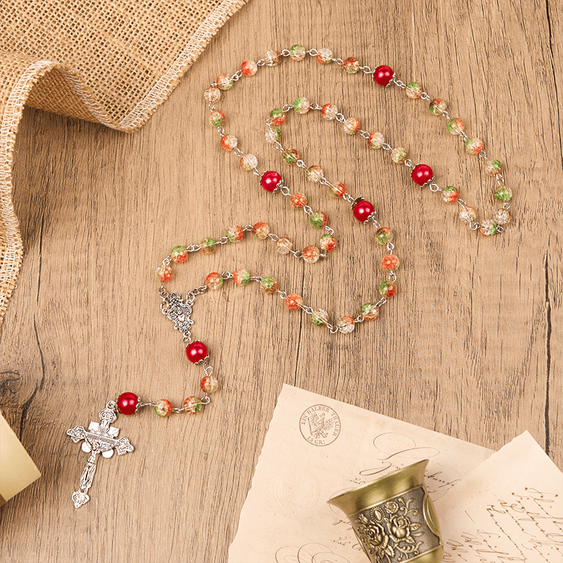 - Introducing the Celestial Harmony Rosary, an exquisitely designed spiritual tool that seamlessly blends the beauty of blue and red acrylic beads with intricate craftsmanship. This rosary not only enhances your prayer experience but also serves as a symbol of deep faith and unwavering devotion.
