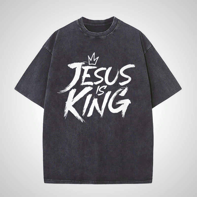 Boldly declare your faith with this ‘Jesus Is King’ unisex washed T-shirt. Featuring a graphic print on 100% cotton, this comfortable tee is perfect for casual wear. Available in multiple colors and sizes S-5XL. Machine washable.