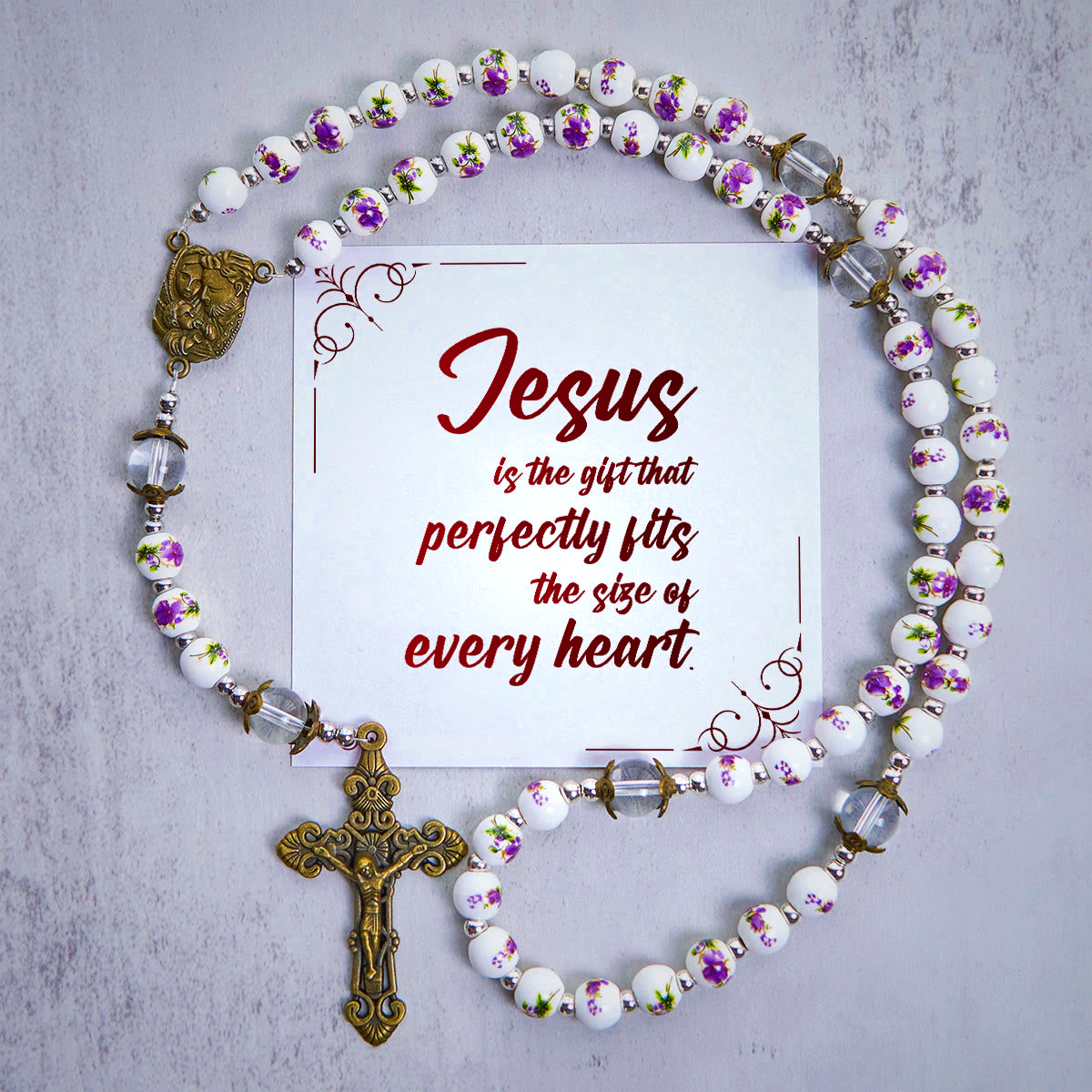 Handmade Violet – Inspired Rosary: A Heavenly Craft with Purple Floral Porcelain Beads