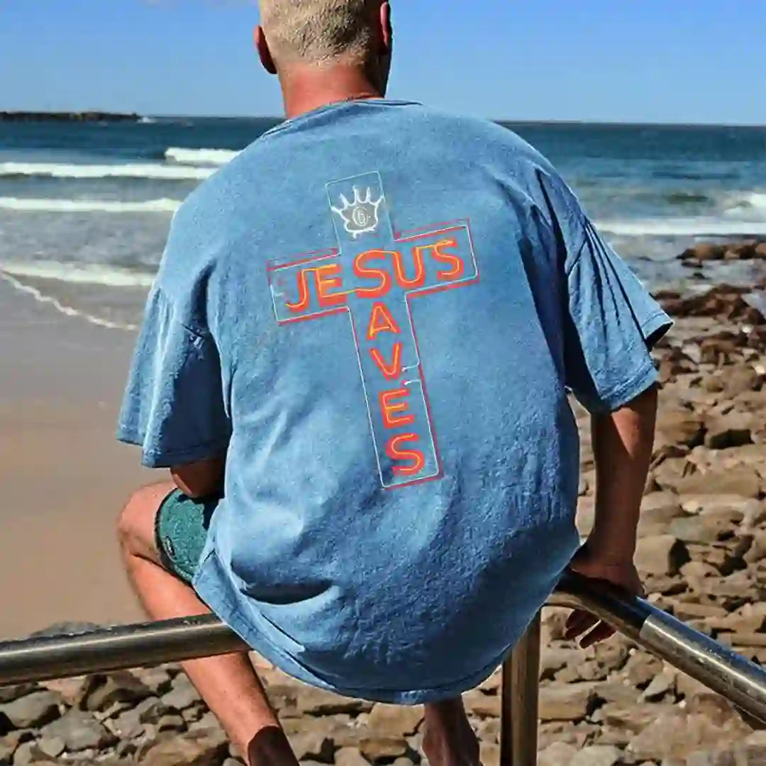Express your faith with the Jesus Saves Cross Graphic T-Shirt. This comfortable, stylish unisex tee features a bold cross design and is made from soft, durable cotton. Perfect for casual wear, it’s available in multiple colors and sizes S-5XL. Machine washable and true to size, it’s ideal for everyday devotion.