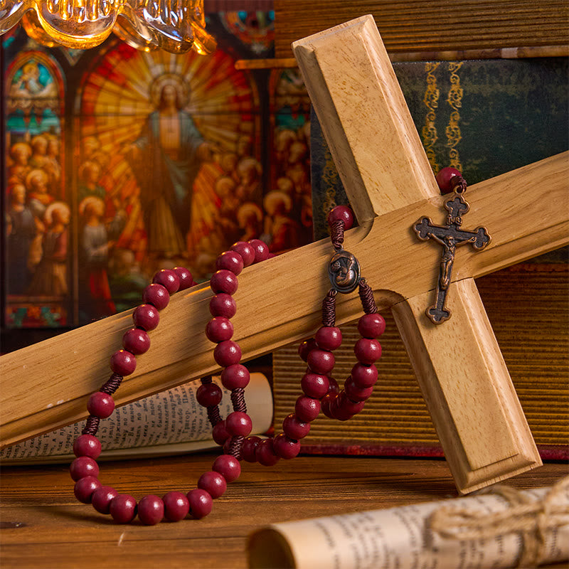 • A Timeless Symbol of Devotion: Featuring rich burgundy beads paired with intricate bronze detailing, this rosary is more than a prayer tool—it’s a tangible expression of your unwavering faith. The centerpiece depicts Mary and Christ, a gentle reminder of love, grace, and redemption.