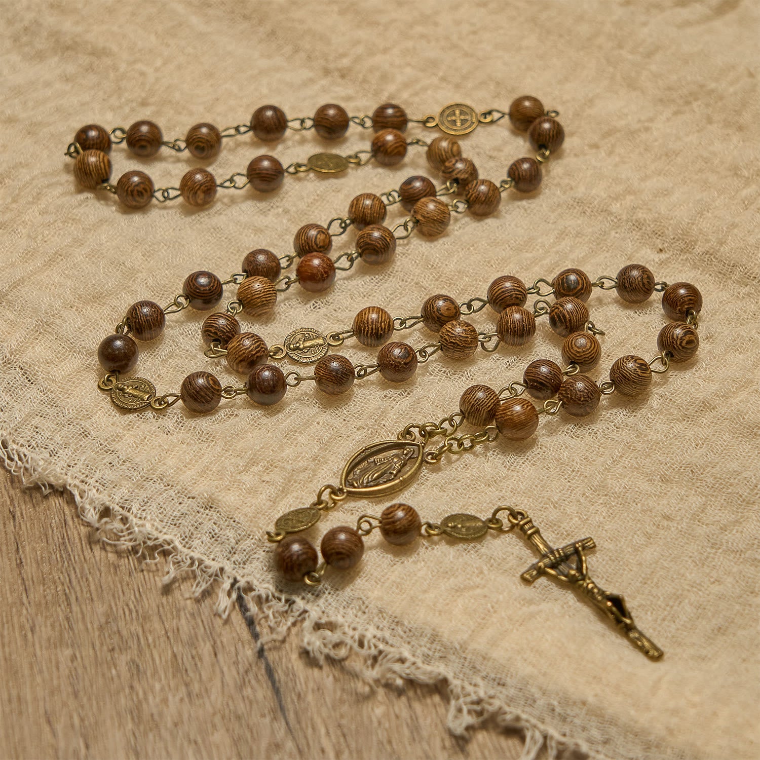 Miraculous Medal & Crucifix St. Benedict Medal 8mm Wooden Beads Rosary