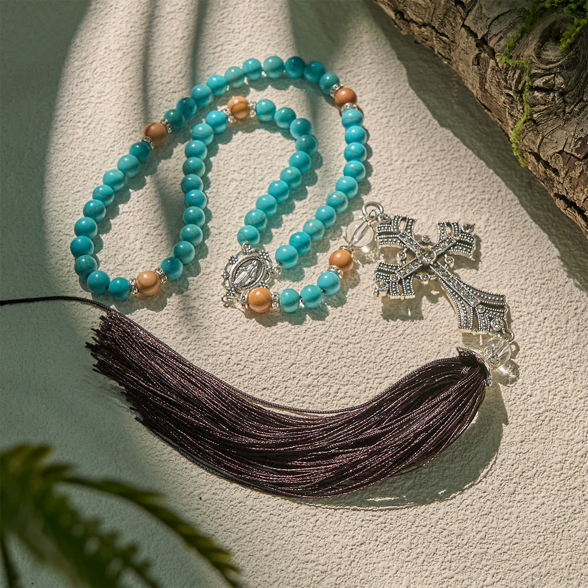 Modern Grace Turquoise Gemstone Rosary with Tassel Cross Pendant
