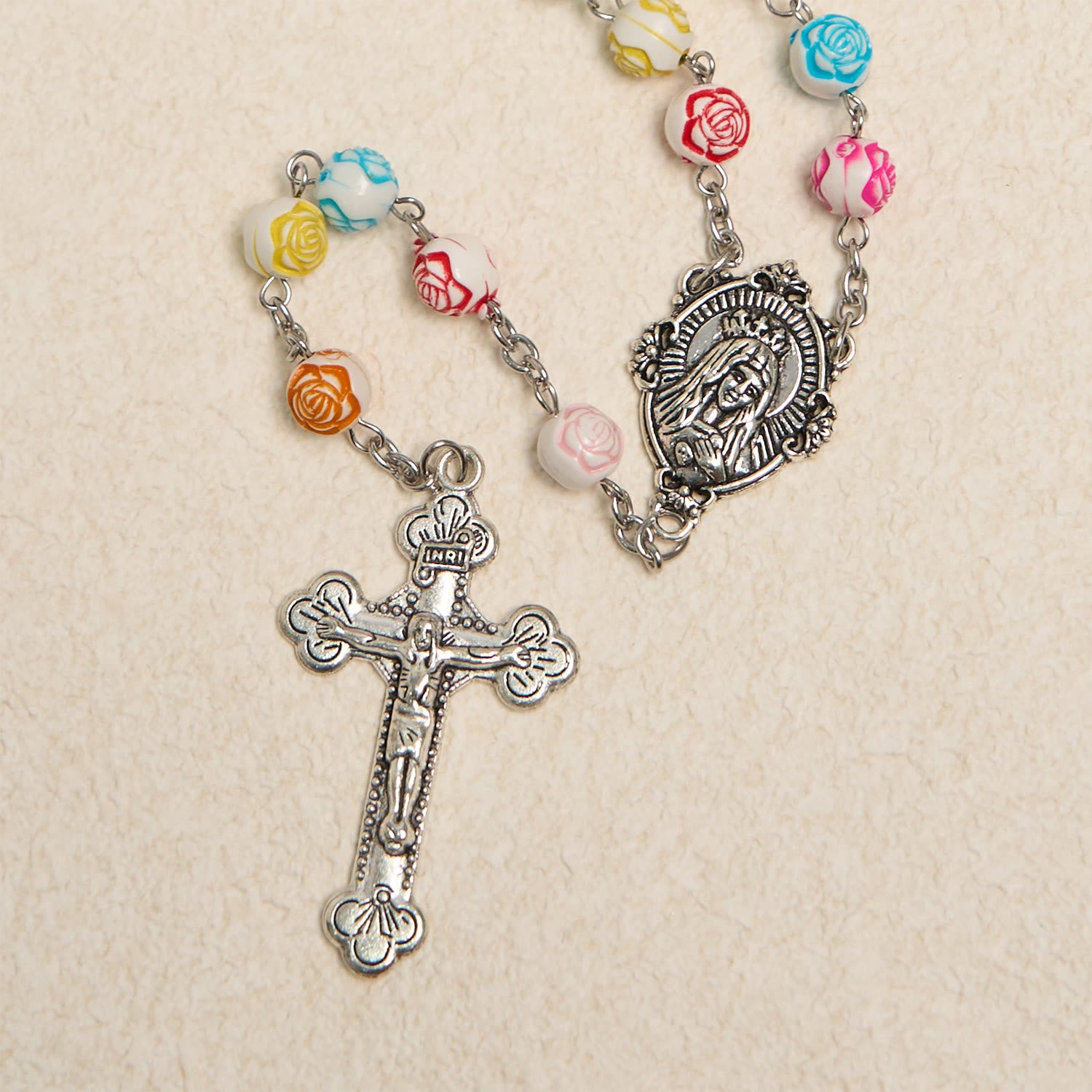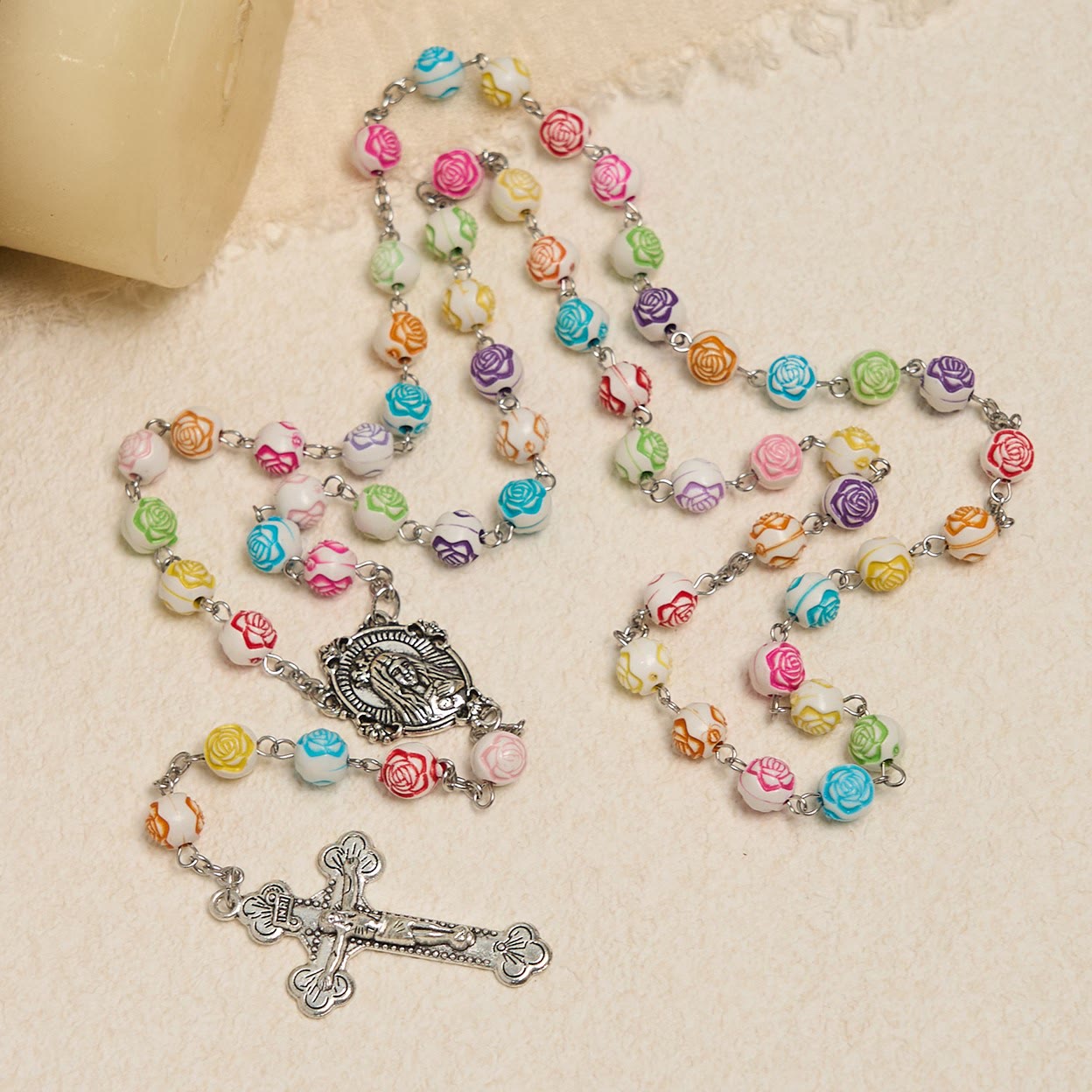 Multicolor Rose Beads with Virgin Mary Medal & Crucifix Rosary: Sacred Palette of Love
