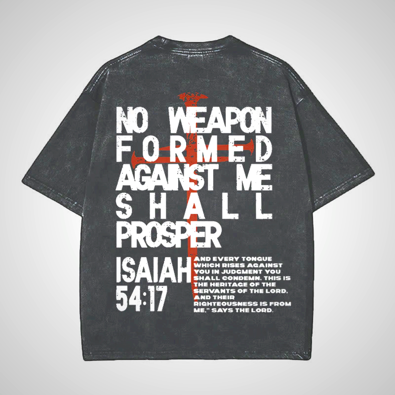 Introducing the ‘No Weapon Formed Against Me Shall Prosper T-Shirt’ – a powerful expression of faith and resilience. This comfortable and durable graphic tee is available in multiple colors and perfect for everyday wear. Crafted from 100% combed ringspun cotton, it features a relaxed fit, round neck, and short sleeves. Ideal for casual occasions and available in sizes S to 5XL. Machine washable for easy care. Please note: slight variations in color and size may occur due to monitor settings and manual measurement.