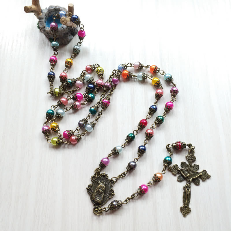 Our Lady of Fátima & Crucifix of 6 mm Round Multicolor Acrylic Alloy Chain Rosary