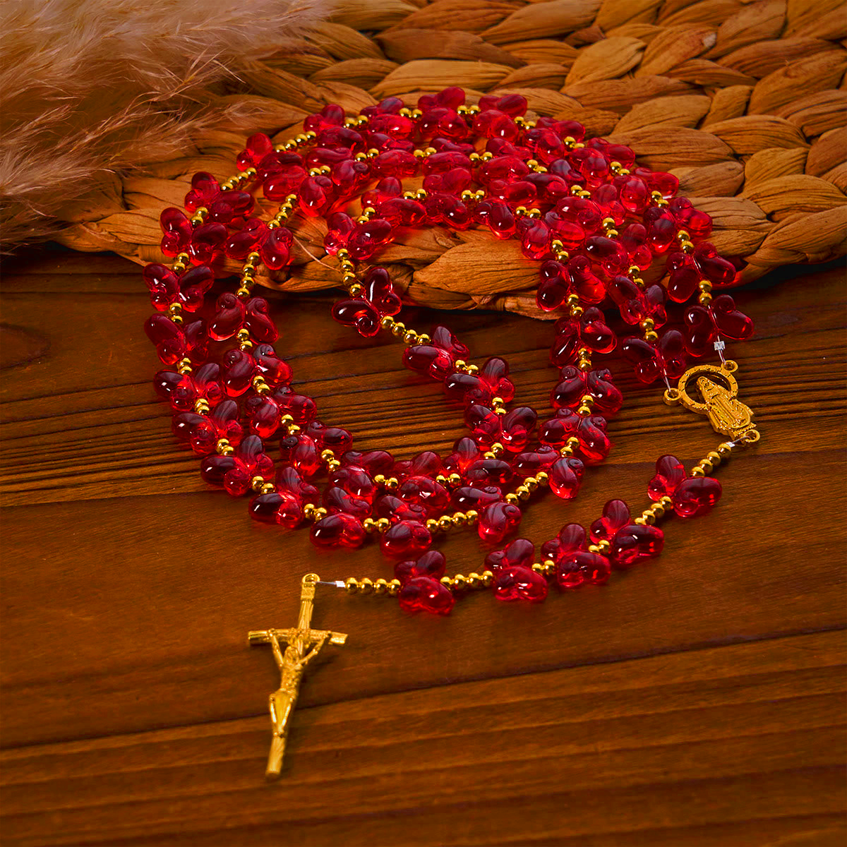 Each bead takes the form of a radiant red butterfly, symbolizing the soul, rebirth, and transformation. The vibrant color evokes passion and eternal hope, turning every prayer into a testimony of faith alive with joy and renewal. -
