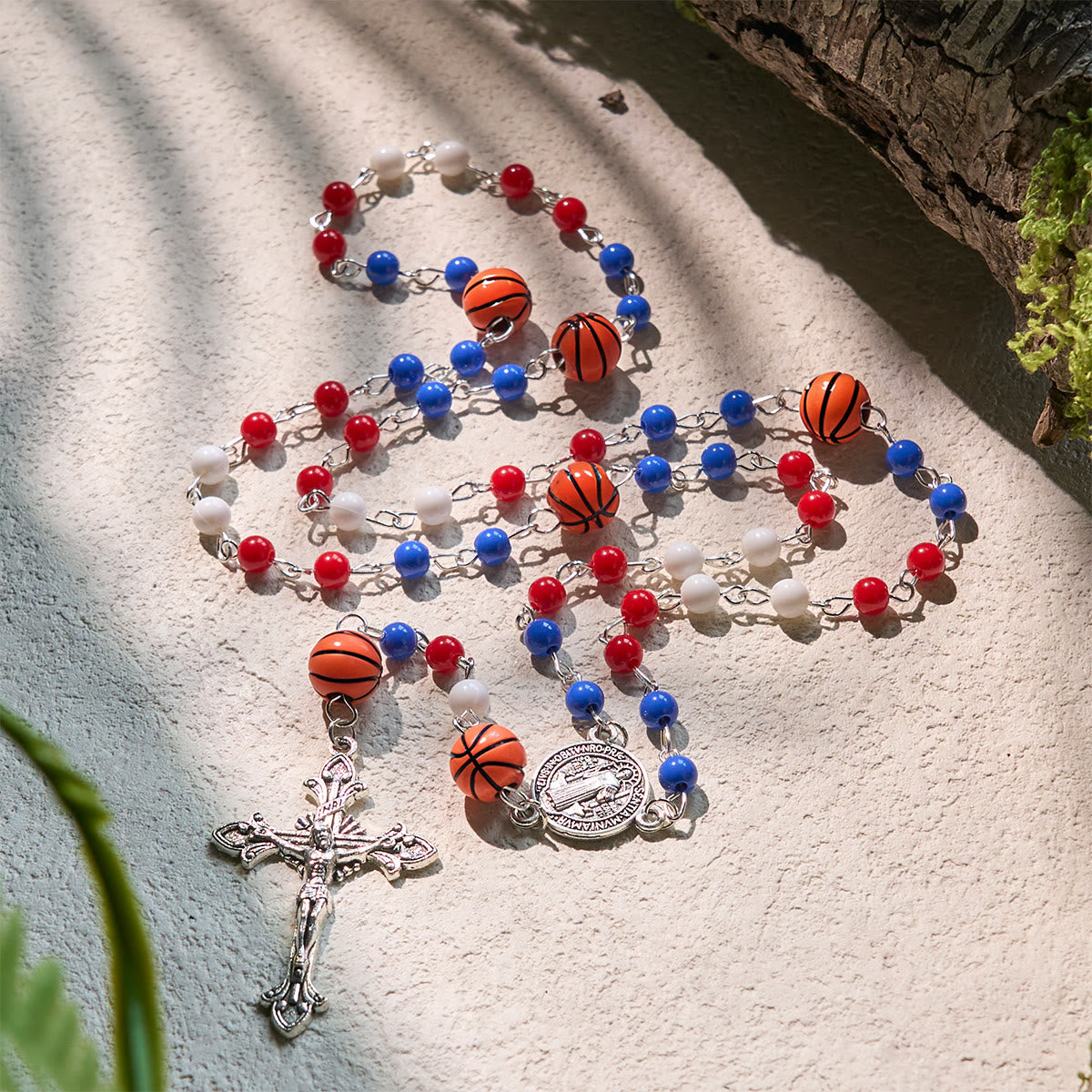 Patriotic Basketball Inspired Beads with St. Benedict Rosary for Sports Faith