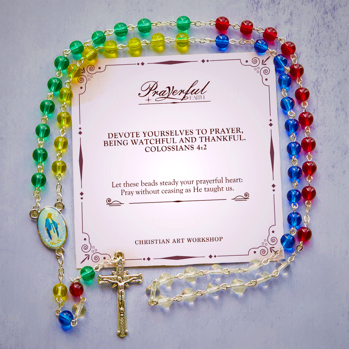 This rosary carries Mary’s motherly tenderness and Christ’s eternal promise—where every color sings of resurrection’s nearness.