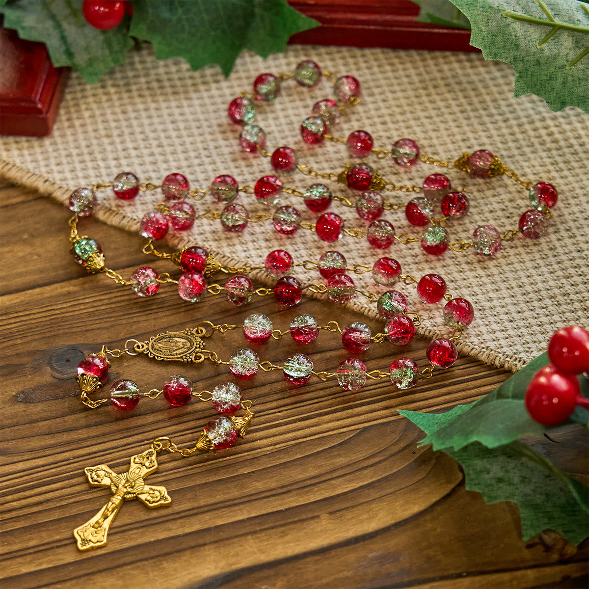 This rosary merges festive Christmas inspiration with profound spiritual significance. The golden crucifix evokes Christ’s love and sacrifice, while the red – and – green beads (echoing classic Christmas hues) celebrate the joy of the holiday season, making prayer a heartfelt blend of devotion and festive charm. -