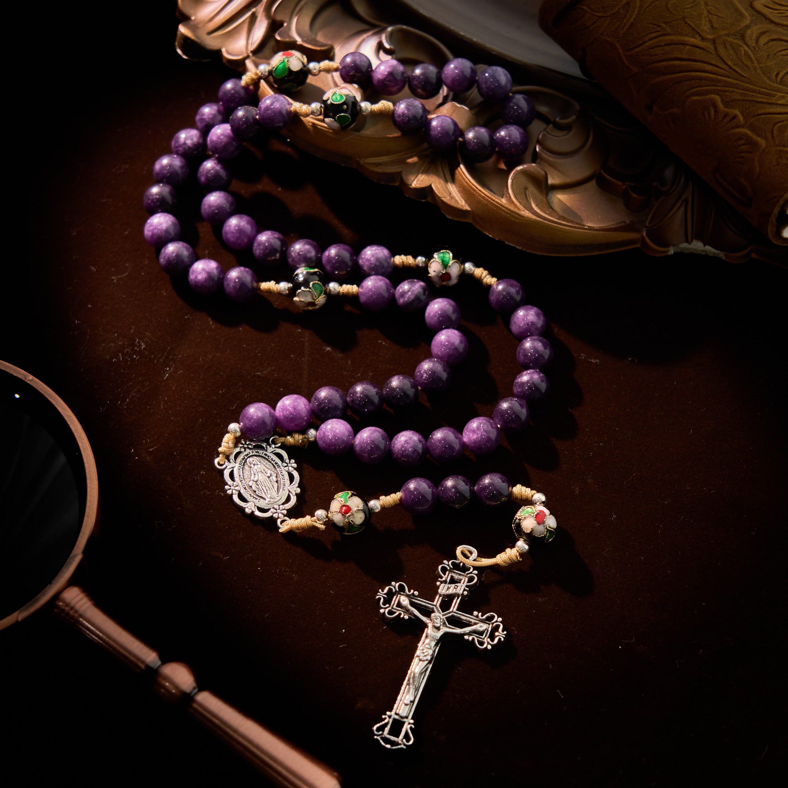 Purple Agate & Cloisonné Beads Rosary with Virgin Mary Medal & Crucifix: Feel Graceful Devotion