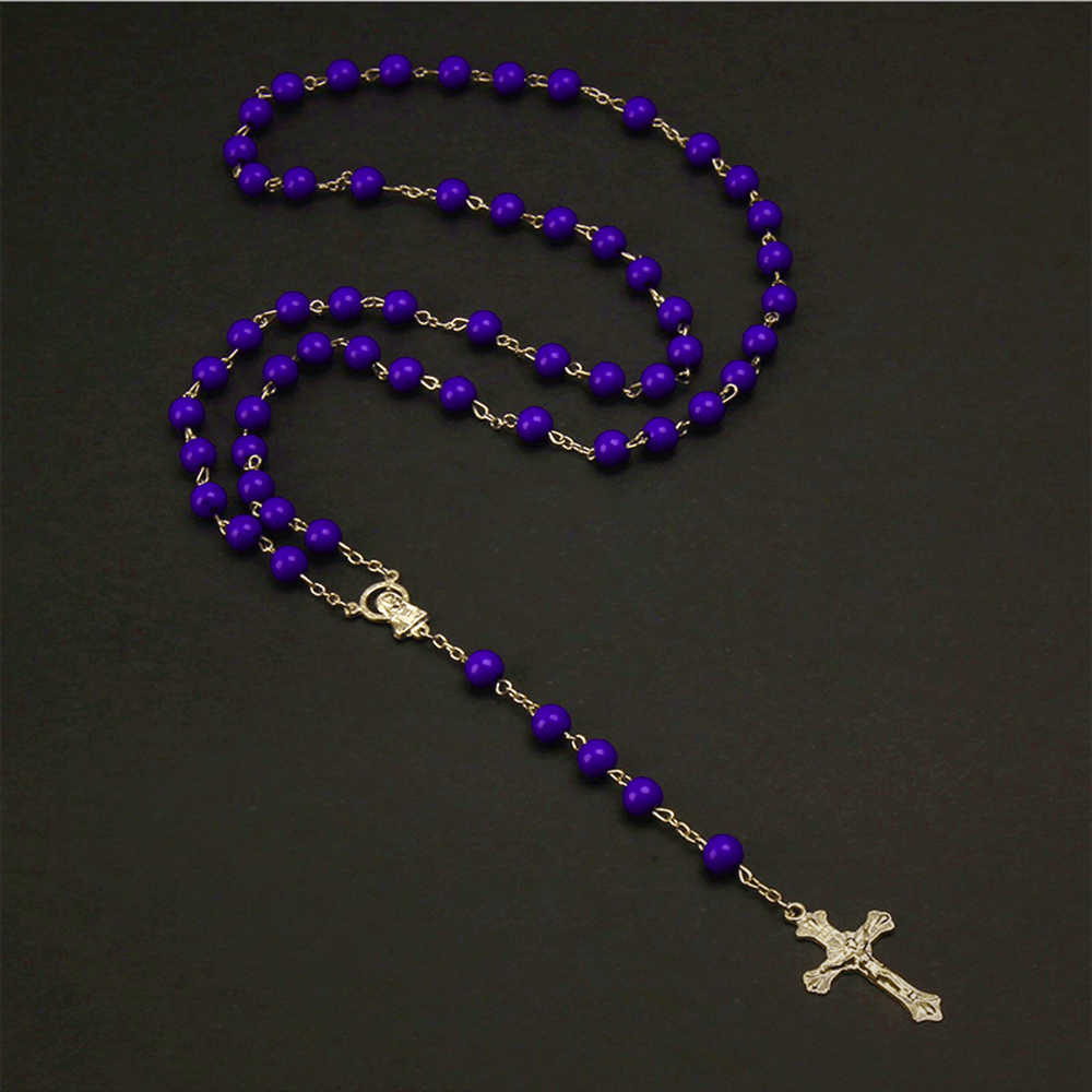 Handmade Catholic rosary featuring six-color stone beads in purple, blue, green, red, and white. Made with turquoise and alloy materials, each bead is 8mm in size. Lightweight at 30g, this high-quality rosary is carefully crafted with love. Perfect for prayer and spiritual devotion.