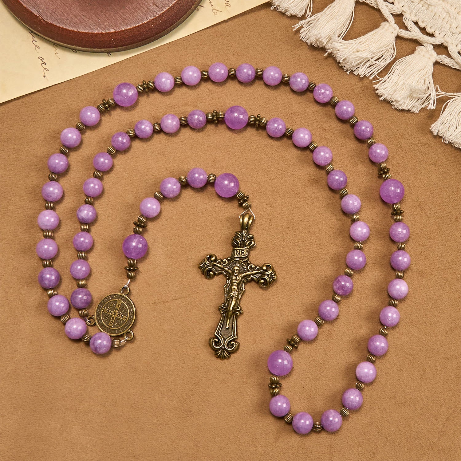 Thanksgiving Gift: Purple Garnet Chalcedony Rosary with Crucifix & St. Benedict: Graceful Spiritual Bond