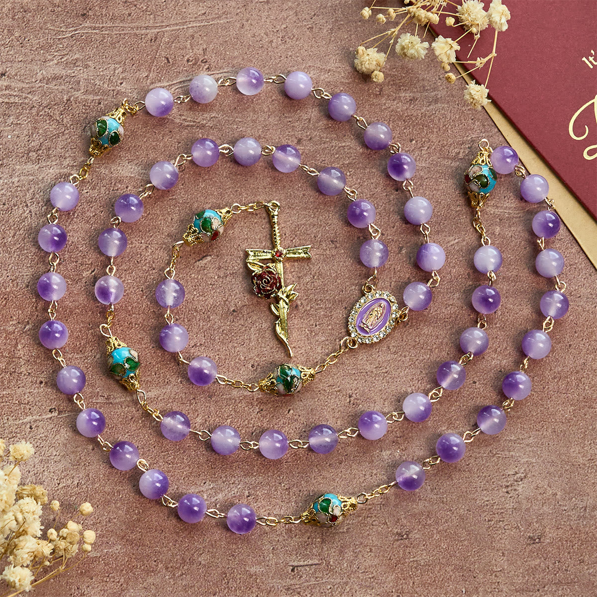 - This Thanksgiving, offer the “Vintage-Style Purple Crystal & Cloisonné Rosary” as a prayer of gratitude made tangible. Luminous purple decades—signs of repentance, renewal, and royal dignity—pair with ornate cloisonné father beads that mark a steady prayer rhythm. The Marian center entrusts every intention to Our Lady’s care, while the floral crucifix proclaims love blossoming from Christ’s Cross. A gift that carries both thanksgiving and intercession.