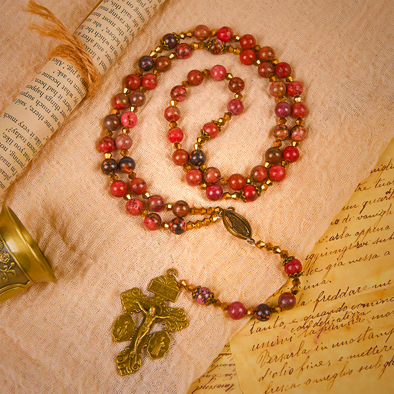 Embrace timeless devotion with our Vintage-Inspired Rosary featuring Pink Rhodonite beads, symbolizing love and compassion. Perfect for prayer and spiritual reflection, this handmade rosary combines elegant design with durable craftsmanship. Ideal as a meaningful gift for baptisms, confirmations, or personal use.