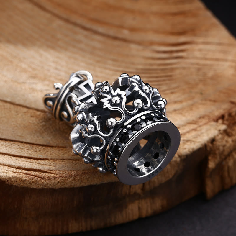 The delicate, ornate design of the crown deepens the symbolism—where royal imagery meets spiritual devotion, each curve holds sharp significance, softened by silver sheen yet bold in representing divine authority. -