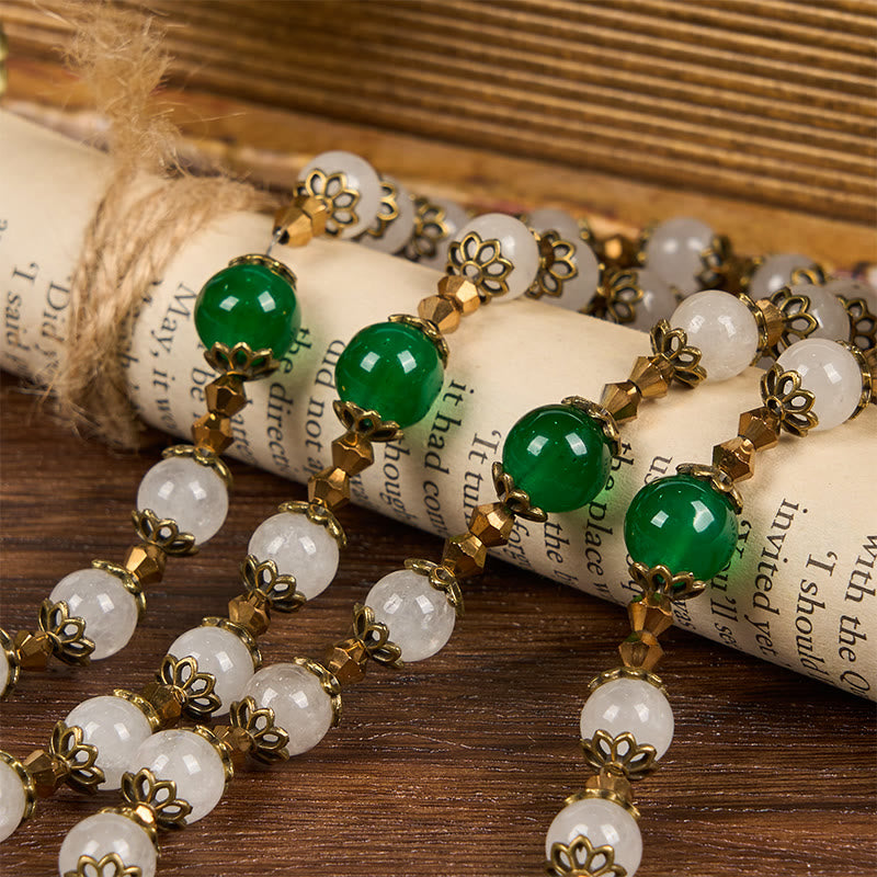 Each bead of this rosary is meticulously crafted from 8mm stone, offering a smooth texture and a serene appearance. The blend of white and green stones symbolizes purity, hope, and renewal, mirroring the divine mercy and compassion of Jesus. -