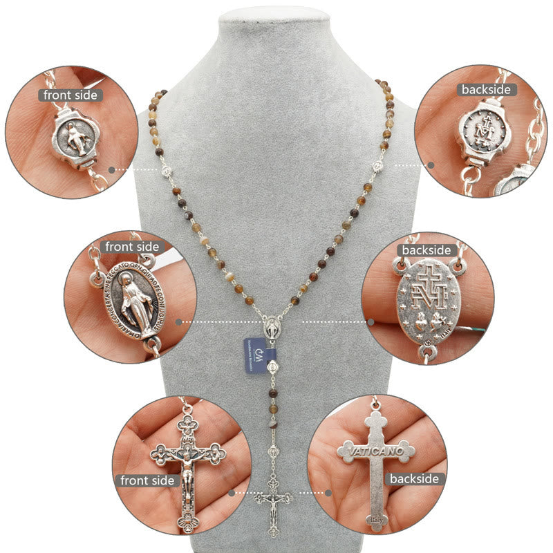 Intricate Metalwork: The rosary incorporates fine metal detailing, including a beautifully engraved center medallion and crucifix. These elements enhance its aesthetic appeal while reflecting its sacred purpose.